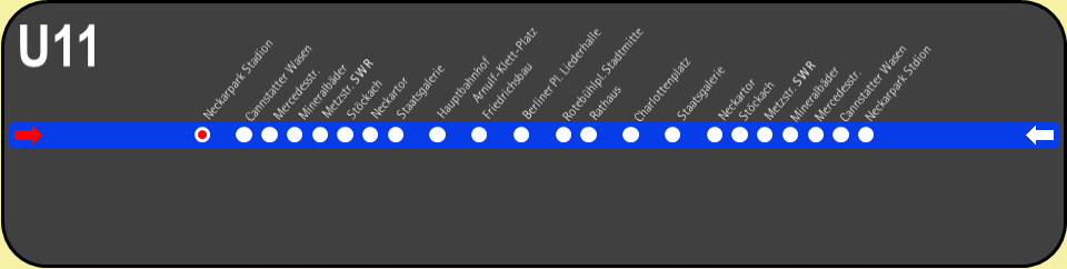 Die Haltestellen: oberirdisch: 14 unterirdisch: 9