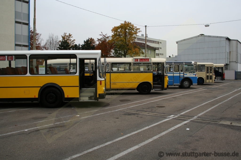 Zum letzten Museumsöffnungswochenende am 21.10.2007 in Zuffenhausen trafen sich unter anderem ein Nürnberger MAN, der O317K von Pflieger, der FBW 50 von Wiest-Schürmann, ein Saurer L4C des Stadtverkehrs Reutlingen, der O322, O307, O405G und 2 historische Wirtschaftsfahrzeuge der SSB.