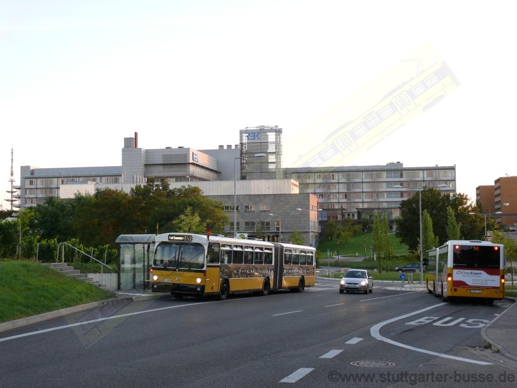 Am Abend des 30. August 2009 begegnen sich an der Haltestelle Yitzhak-Rabin-Straße der O 305 G und Wagen 7120. Im Hintergrund ist das am 28. März 1973 eingeweihte neue Robert-Bosch-Krankenhaus zu sehen.