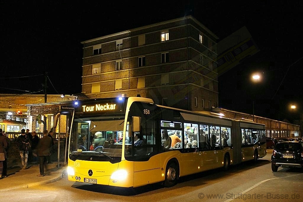 Zur "15. Langen Nacht der Museen" am 17. März 2012 war auch der derzeit neueste Omnibus der SSB AG als Zubringer unterwegs, hier zu sehen an der Straßenbahnwelt Stuttgart im Veielbrunnenweg.